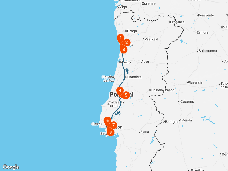 - Distance from Porto: Approximately 100 kilometers (62 miles)
