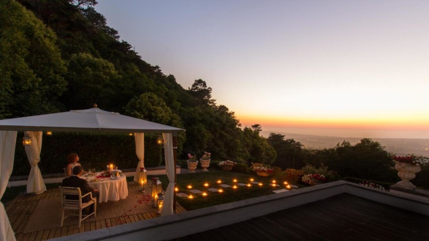 Enjoy the experience of a special dinner for two in this palace made for romance, located on the mountainside of Sintra with privileged views of the Moorish Castle and Pena Palace. Dine in one of the palace's ballrooms or next to the pool for an unforgettable experience which brings together the idyllic scenario with stylish flavours.