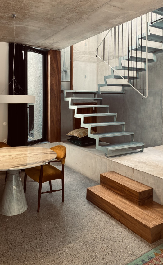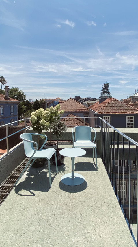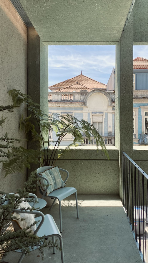 Casa da Árvore offers 5 apartments, complementing the Hotel Tipografia do Conto, located opposite Rua Álvares Cabral. Built in exposed green concrete, this building recreates the composition and typology of the traditional houses on that street, introducing a variation: behind the scenic main facade, a tree grows along the front courtyard, inviting you to discover its interior life.